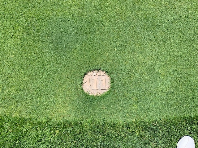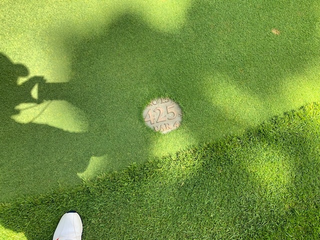 11番416yミドルは、ドライバーはナイス。25度のuでのセカンドは超完璧。1mに2オン。沈めてナイスバーディ。2アップ。