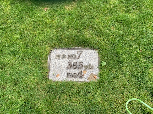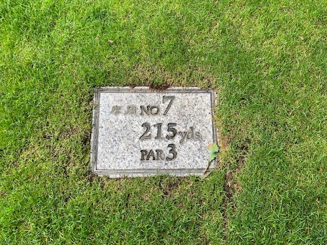 6番414yミドルは、ドライバーはちょいと左へ。最後にお池にジャブン。が、キャディのMさんが池から球を拾ってくれました。その球で池越えの190yを3wで10mに3オン。ボギー。