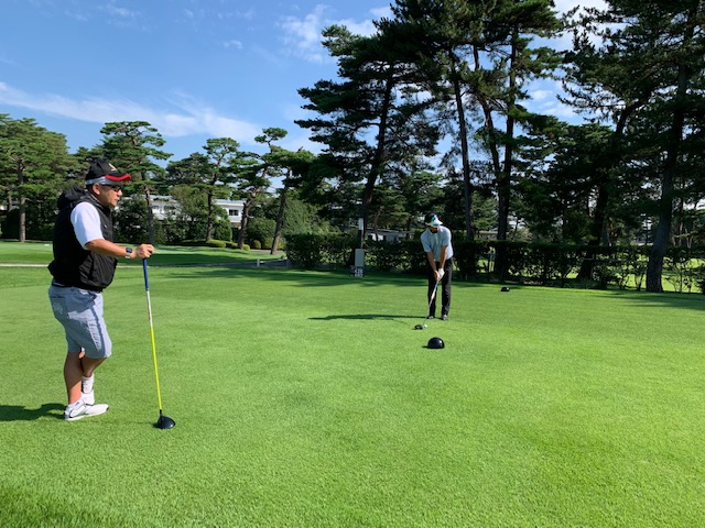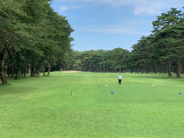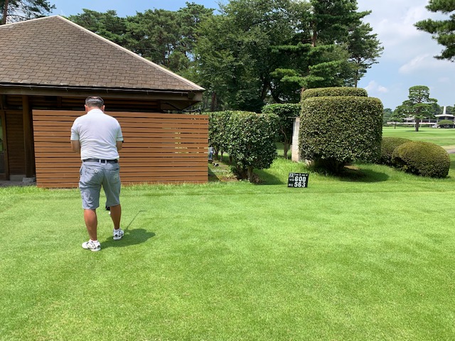 3番167yショートは、6アイアンで打つも右へ。寄らず入らず。見事な1オンからプロと東京都の縁のT.Nさんが無難にパー。