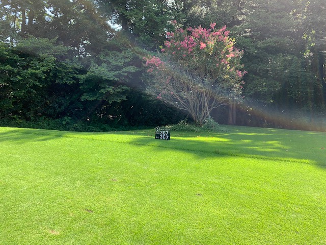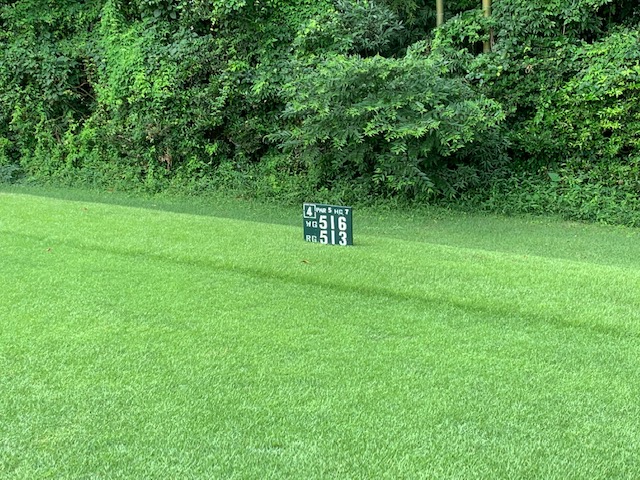6番412yミドルは、ドライバーは竜巻球でクリークイン。ドロップしての3打目はショート。寄らず入らず。見事な2オンからプロとT.Nさんがパー。