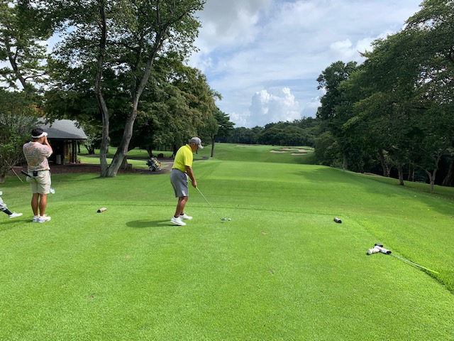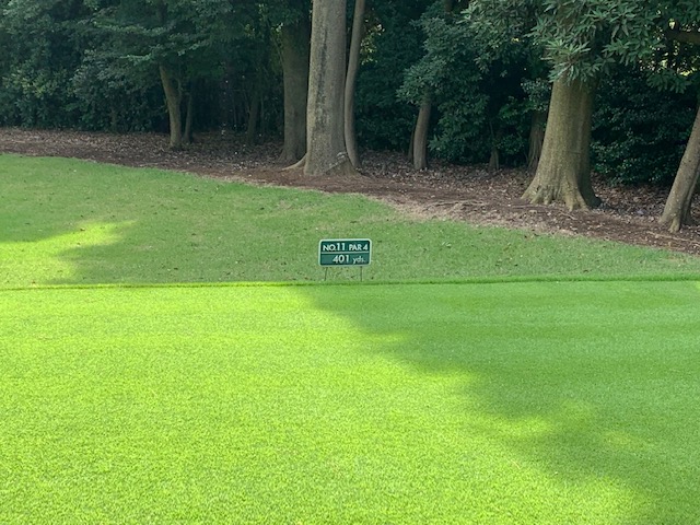 11番401yミドルは、ドライバーはナイス。残り150yからの8アイアンがバンカーイン。カラーへ。3パンチでダボ。見事な2オンからメルウェイと東京都のS.Hさんが無難にパー。
