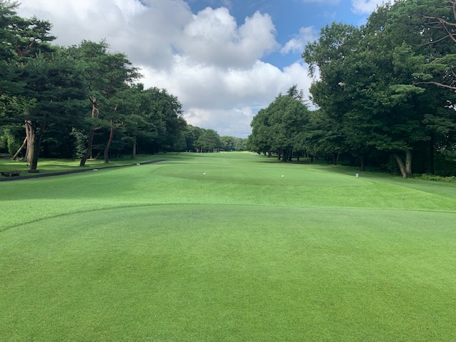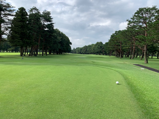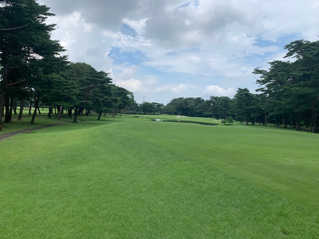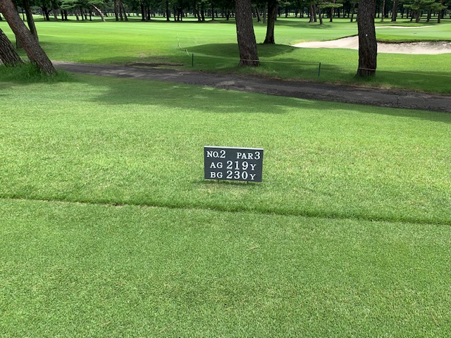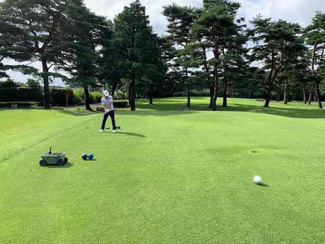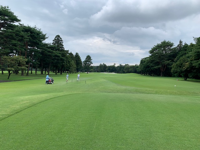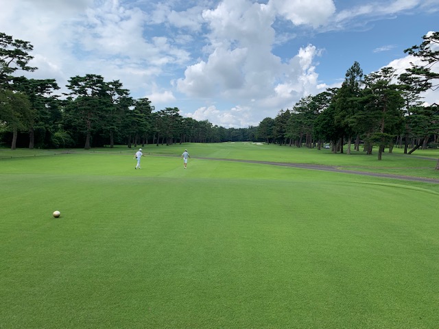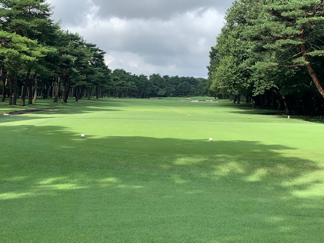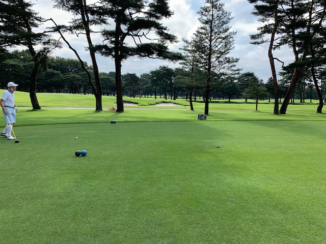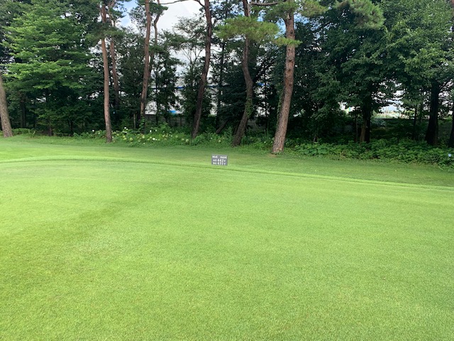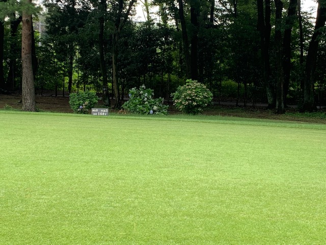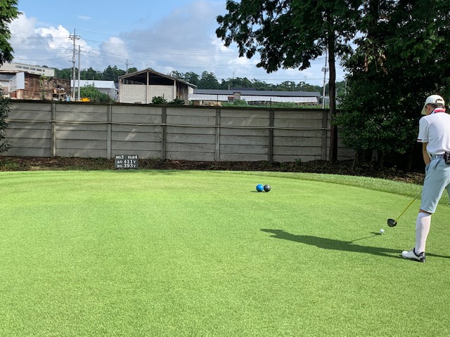 2番171yショートは、6アイアンで打つも左へ。寄らず入らず。見事な1オンから今日の主役のM.Hさんが無難にパー。