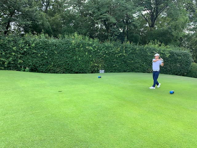 9番420yミドルは、ドライバーはまずまず。4アイアンでのセカンドはショート。寄らず入らず。見事なアプからM.Hさんがパー奪取。