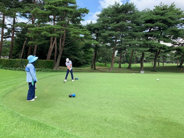 8番189yショートは、25度のuで打つも右へ。乗らず。やっとのボギー。見事なアプからN.Sさんがパー奪取。