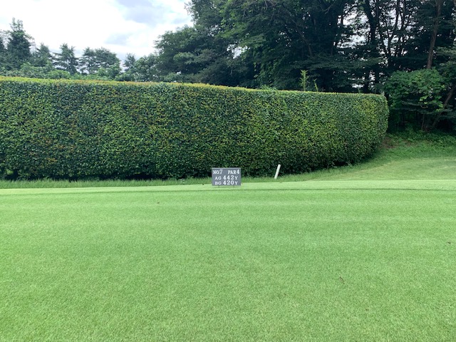 7番442yミドルは、ドライバーは竜巻球。5アイアンでフェアウェイへ。PWで3オン。ボギー。