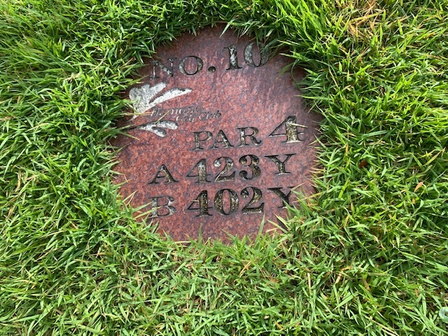 10番402yミドルは、ドライバーは左のクロスバンカーイン。3uで打つもトップ。残り50yから寄らず入らず。見事なアプからS.Sさんがパー。
