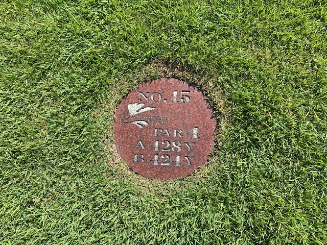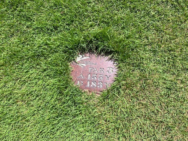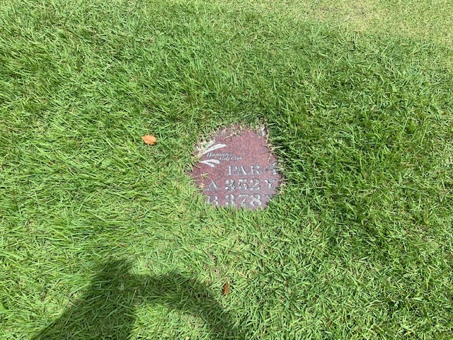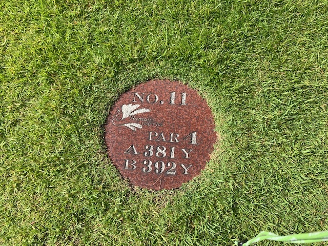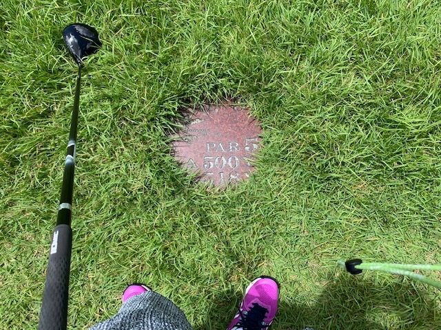 6番527y左ドッグのロングは、ドライバーはナイス。3uもナイス。残り65yからカラーへ。なんとかパー。5mに3オンのS.Sさんも無難にパー。