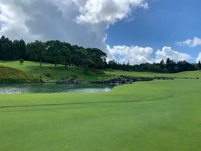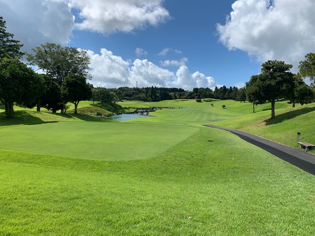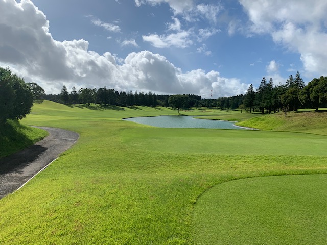 11番418y池越えの右ドッグのミドルは、ドライバーはまずまず。3wで残り30yへ。なんとか1ピンに。沈めてナイスパー。見事な2オンからS.Sさんも無難にパー。
