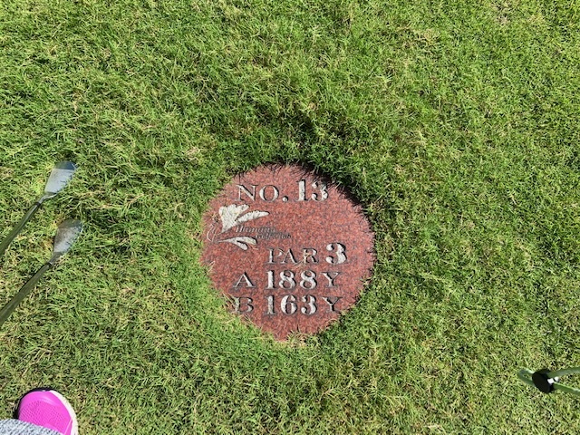 13番163yショートは、7アイアンで打つも左奥へ。ナイスアプでパー。同じくナイスアプからT.Hさんもパー。