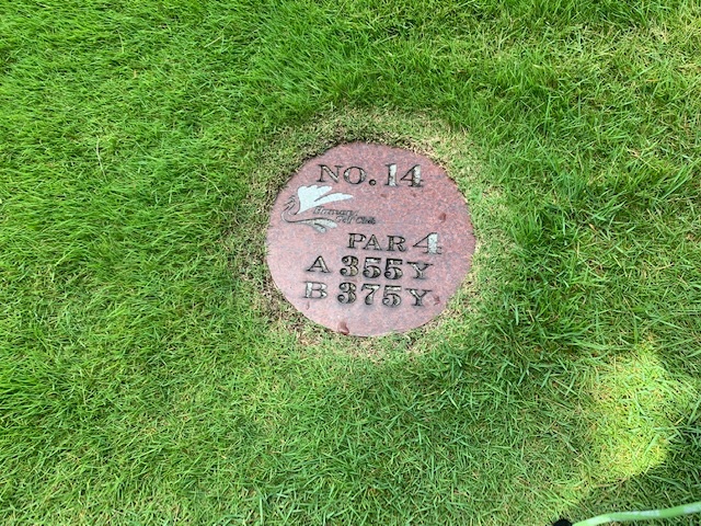 14番400yミドルは、ドライバーは竜巻球。8アイアンで残り130yへ。9アイアンで3mに3オン。入れきれず。見事なアプからS.Sさんがパー。