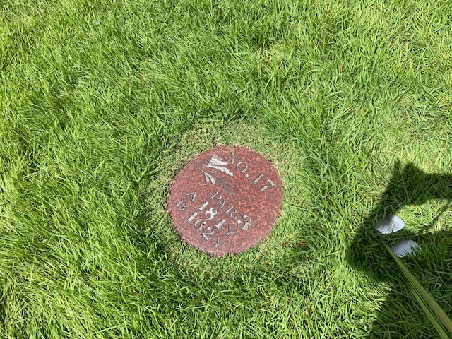 17番170yショートは、7アイアンでピン左へ。52度で転がして30センチに。ナイスパー。奥のカラーからT.YさんとS.Sさんが無難にパー。