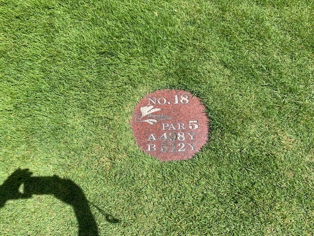 18番530yロングは、タイミングを外して打ったドライバーは右へ。暫定球を打つ。初球はなかった。バンカーから25度のuで右ラフへ。PWでショート。なんとかダボ。皆様3オンから無難にパー。
