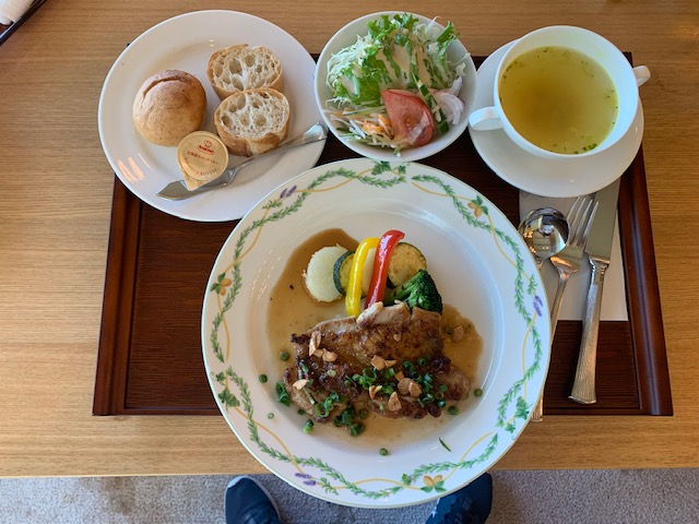 ランチはチキンソテーを食す。まずまず。まぐろ丼は超美味かったとのこと。