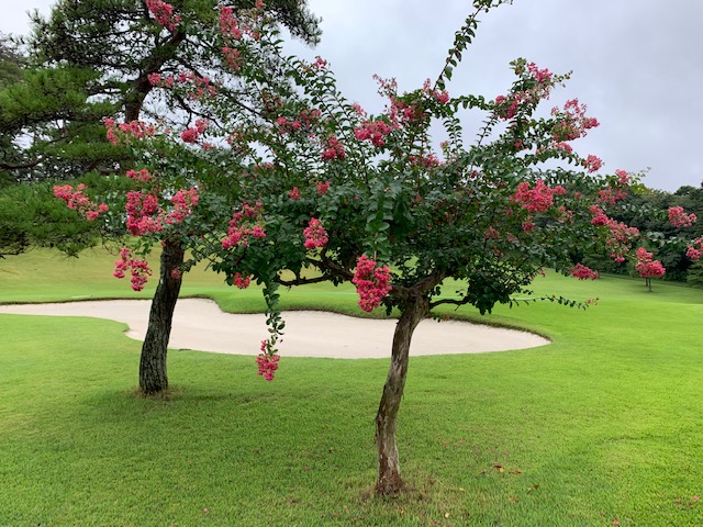 9番344yミドルは、ドライバーは狙いのフェードで左ラフへ。9アイアンで打つもどダフリ。PWで3オン。ボギー。1.5mに見事な2オンであったが、F.Mさんが残念パー。