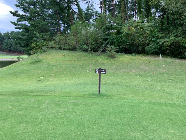 4番142yショートは、9アイアンで打つも右手前のカラーへ。パターで打つもデカい。入らずボギー。しっかり1オンさせた縁の東京都のM.Tさんと埼玉県のN.Yさんが無難にパー。