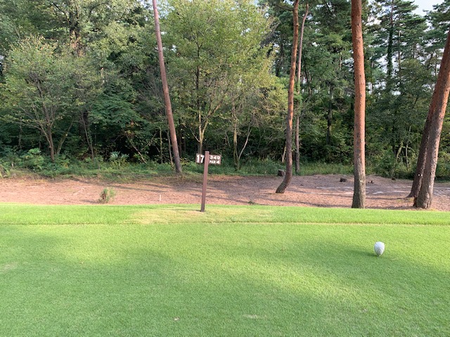 16番500yロングは、ドライバーは右ラフへ。3wで打つもショボい球で左のクロスバンカーイン。木がありややこしい110yの位置から8アイアンで転がしなんと3オン。ラッキー。無難にパー。