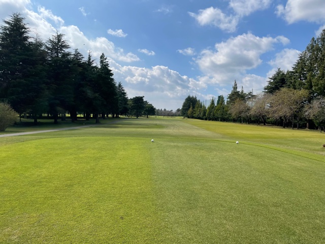 ようやく25分前に到着。ギリギリでしたね。急いでハムエッグを食し、インから。今日は高麗グリーンで青ティで進行します。