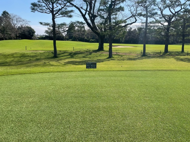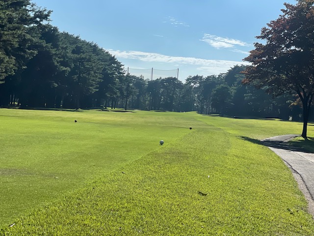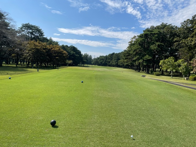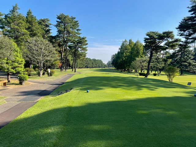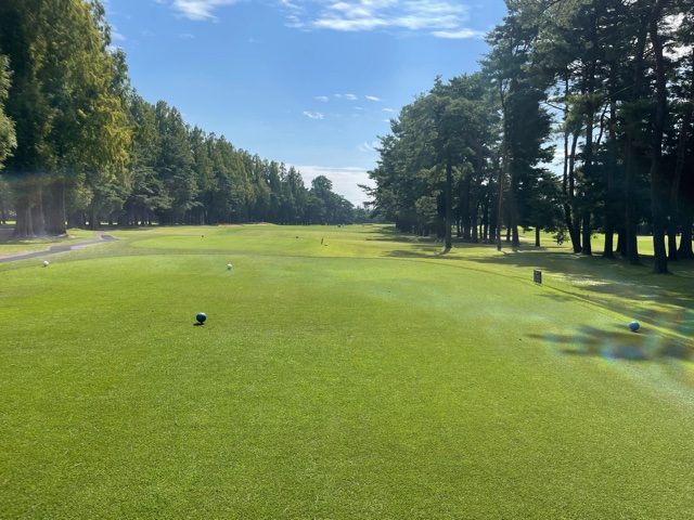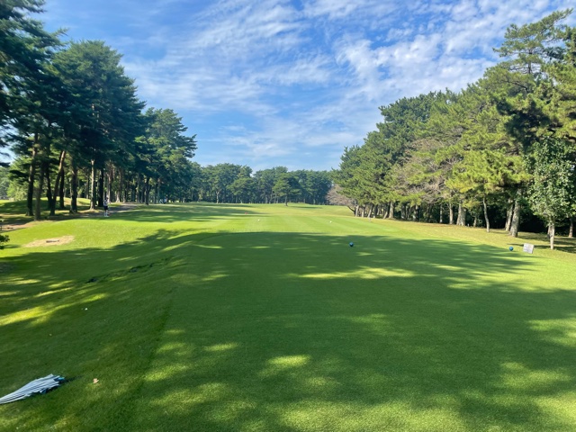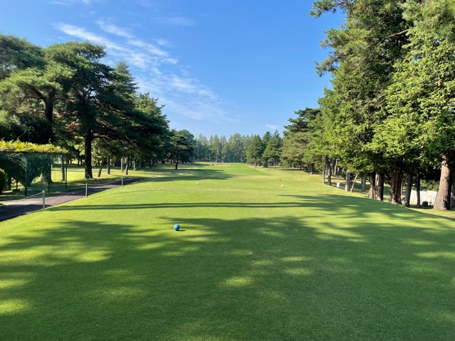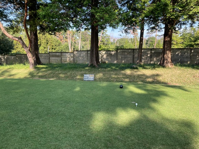 時間になり、慌ててインコースへ。今日はみらいグリーンの黒ティで進行します。黒ティは8年前の倶楽部対抗の練習ラウンド以来かな。