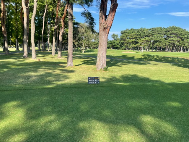 12番440yミドルは、ドライバーは左ラフへ。3uで打つも左のバンカー手前へ。ナイスアプ&パターでパー。