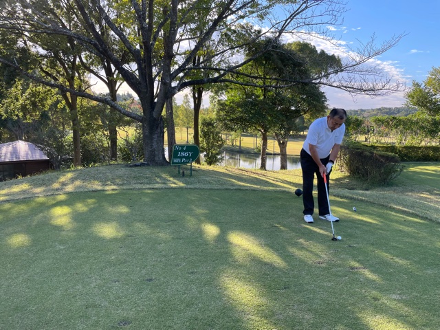 4番186yショートは、5アイアンで打つも左のバンカーイン。見事なアウトでパー。素晴らしいショットで1オンの東京都のS.CさんとA.Yさんが無難にパー。