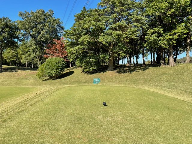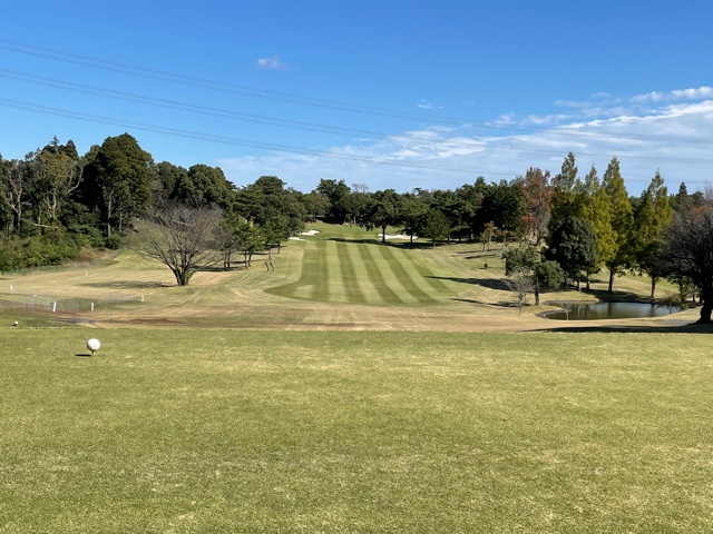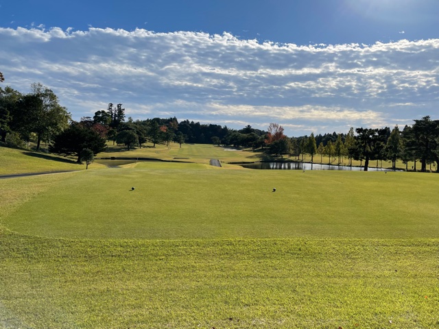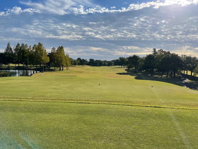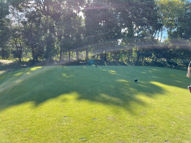 14番358y右が池で左がOBのミドルは、ドライバーはナイス。PWで2.5mに2オン。が、残念パー。連続ならず。