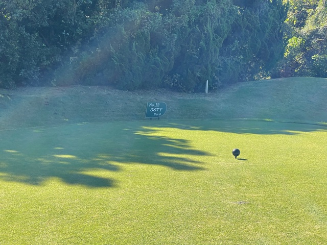 12番387yミドルは、ドライバーはナイス。残り138yからの8アイアンがドンピシャ。10センチにピタリ。ナイスバーディ。