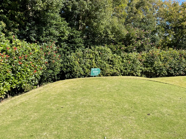 16番521yロングは、ドライバーはまずまず。3w、PWで5mに3オン。放り込めず。残念パー。同じく3オンからS.Cさんが無難にパー。素晴らしいアプからT.Nさんもパー。
