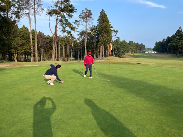 11番167yショートは、6アイアンでピン左12mに1オン。無難にパー。同じく6アイアンでピン右7mに1オンのT.Uさんも無難にパー。
