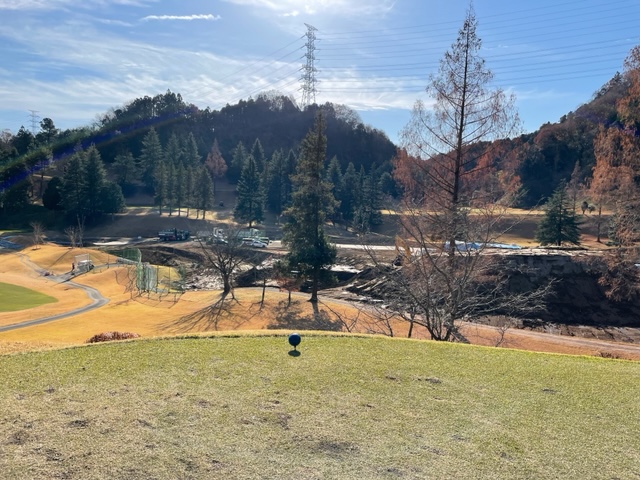 9番343yミドルは、ドライバーは竜巻球。木に当たって下に落ちた。この時、事件が。私の球が当たった木の左の奥から前の組の会員さんのTさんが出てこられてバツ印を出された。あらま、人がおられました。隣りのホールでプレーしていた方が9番の左ラフから自分のホールに戻られたのを確認して、打ったんでしたが、、、。走って謝りに行く。大丈夫よ~とTさん。52度で6mに2オン。無難にパー。