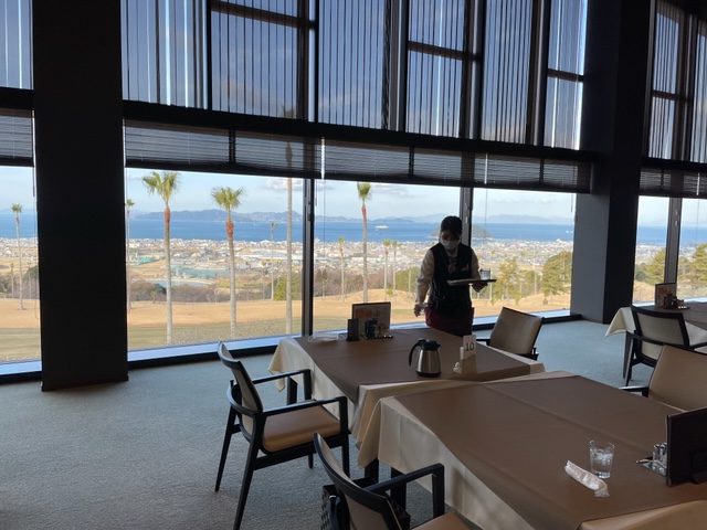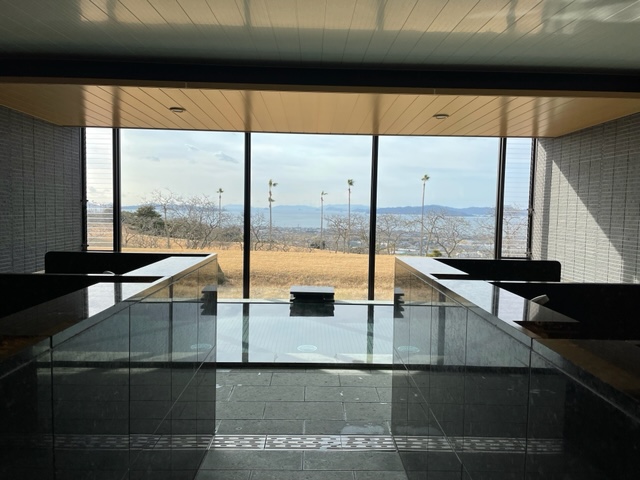 ビューが最高のお風呂に入る。40分後、奥道後ゴルフクラブを後にしました。この後、パプニングが起きるとはこの時は知る由もありませんでした。