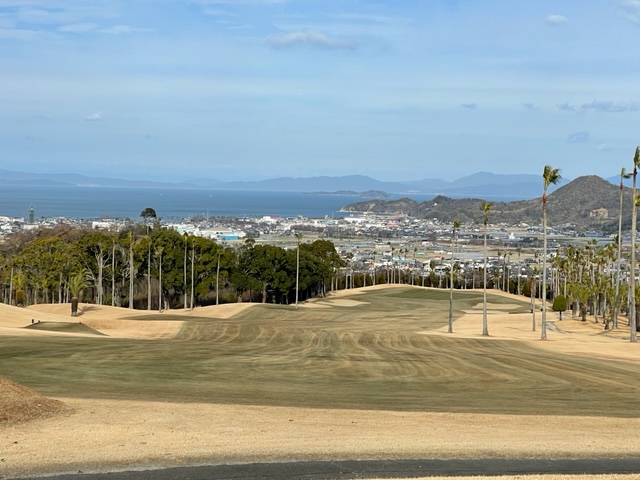 愛媛シリーズ2日目はパブリックの奥道後ゴルフクラブです。道後温泉から25分ほどです。おおー、眺めが良い!
