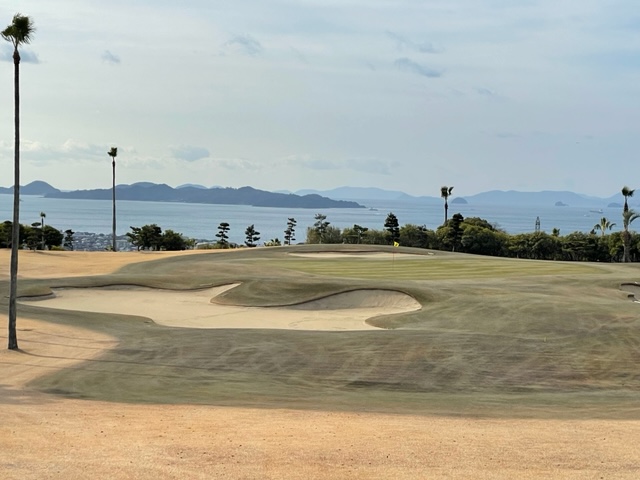奥道後ゴルフクラブの感想・・・ビューが素晴らしい。高知黒潮を思い出しました。とても美しいゴルフ場です。きっとコスパも良いからでしょう、来場者の多さが目立ちました。昨日の松山より断然広いですが、やはり左右に白杭が目立ちます。