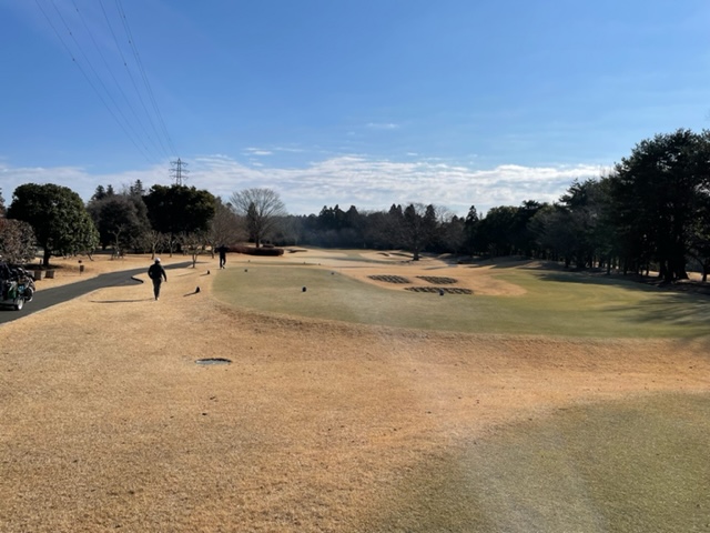 5番375yちょいと狭いミドルは、ドライバーは右へピュー。8アイアンでチョン出し。PWで3オン。ボギー。狭いフェアウェイへ打たれたI.Nさんがしっかり2オンさせて楽々パー。