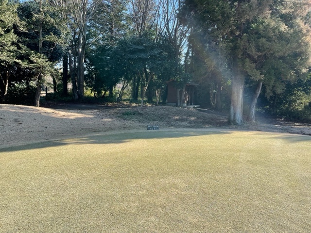4番384yミドルは、ドライバーは左ラフへ。8アイアンでのセカンドは右手前へ。ナイスチップでパー。3mに2オンのK.Iさんが放り込んでナイスバーディ。アウトは赤字となった。I.Nさんもしっかり2オンから無難にパー。