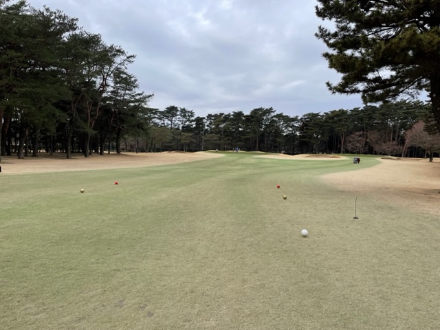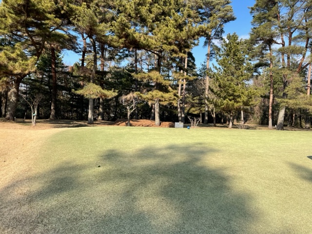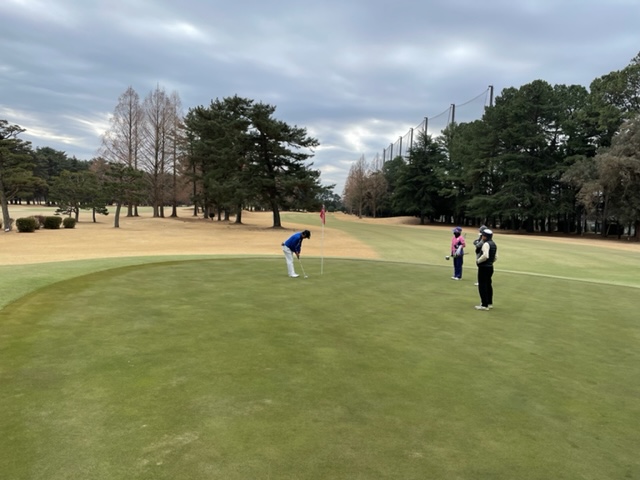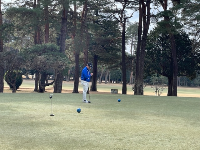10番548y右ドッグのロングは、ドライバーはまずまず。3wでのセカンドが左へ。木があり狙えない。8アイアンでバンカー手前へ。寄らず入らず。ナイスアプからH.Hさんがパー奪取。また、Y.Iさんもパーゲット。