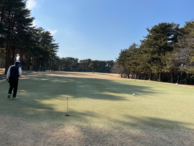 2番135yショートは、9アイアンでピン奥12mに1オン。アホの3パンチ。ちょっと奥からは難しかったな。素晴らしいアプ&パターでM.Wさんがパー奪取。