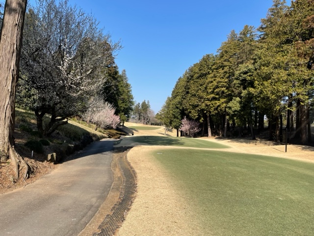 1番355yミドルは、ドライバーは左のクロスバンカーイン。6アイアンで打つも右のカラーへ。パターで打つも2.6mに。入らずボギー。奥からパターで寄せたY.Yさんが銅パーゲット。