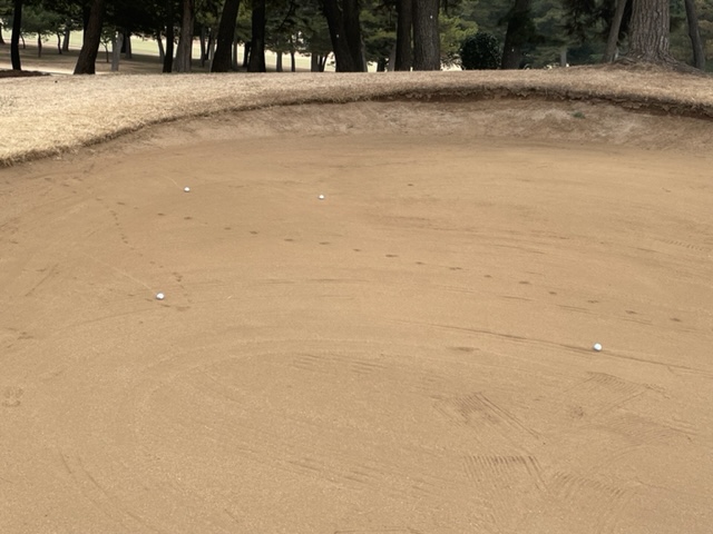 7番198yショートは、3uで打つも竜巻球でバンカーイン。寄らず入らず。