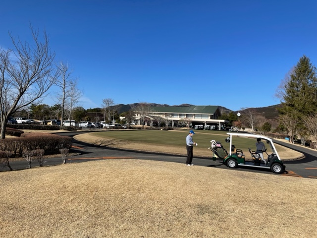 今日はセルフデーということで前金5500円を支払い、シューズは車で履き替え、海外のゴルフみたいです。カートにキャディバッグを積んでアウトからティオフ。