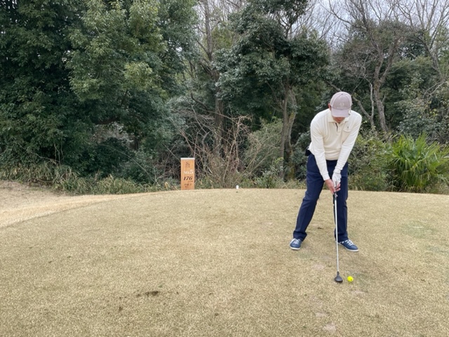 5番176yショートは、5アイアンで打つも左のバンカーイン。ここから1.2mに2オン。沈めてアウト初パー。素晴らしいパター力でK.Oさんが2個目のパー。やるな!