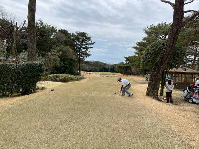 17番229yショートは、3wで打つも右の木に当たり真下へ。難しい位置からナイスアプでしたが、パターがショボ。ボギー。