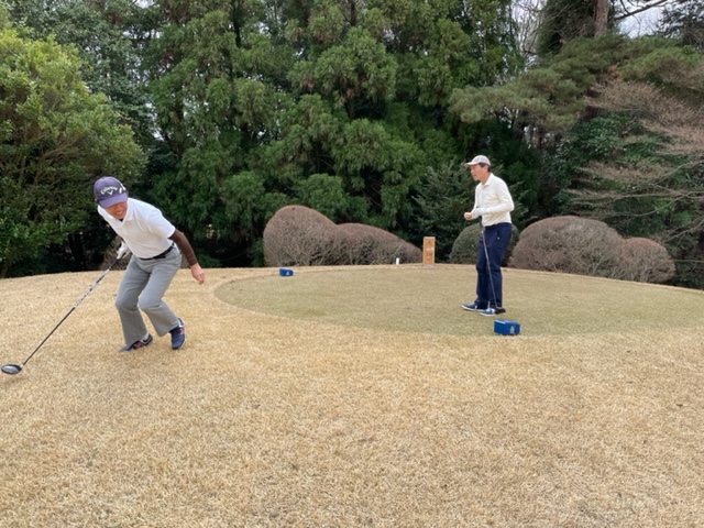 皆様は打球場に行かれますが、私はのんびりとスタッフの皆様と歓談。で、パター練習場で久しぶりにお会いする杉本英樹プロと歓談。ビッグスギのステップアップゴルフではしょっちゅうお会いしてましたので。