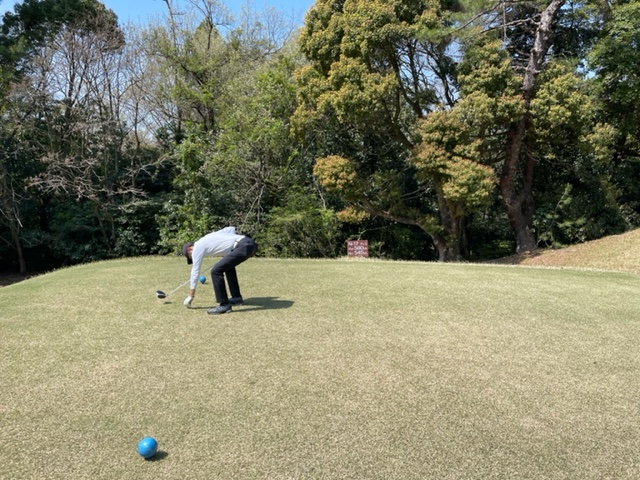 1番535yロングは、ドライバーは左へ。8アイアンでチョン出し。3wで残り55yへ。寄らず入らず。見事な3オンからM.Iさんが無難にパー。