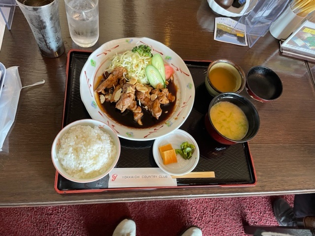 まずはレストランでハムエッグを食しながら、M.Iさんと二人ミーティングです。その後、パター練習後、インから。
