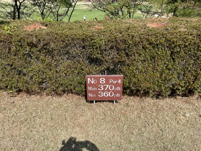 8番370yミドルは、ドライバーは右へ。ラフから木がある難しい位置から8アイアンで3mに2オン。仕留めきれず。