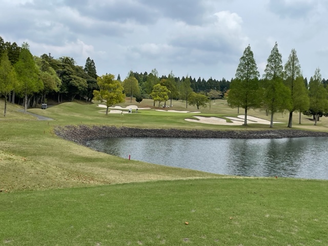 7番318yミドルは、ドライバーは右にすっ飛ぶ。林からチョン出し。9アイアンで手前13mに3オン、入らずボギー。しっかり2オンのS.Kさんが無難にパー。