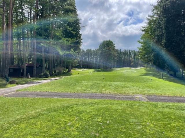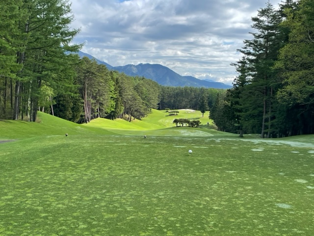 5番159yショートは、8アイアンで打つも右に外れる。なんとか寄せてパー。見事な1オンからA.Fさんが無難にパー。