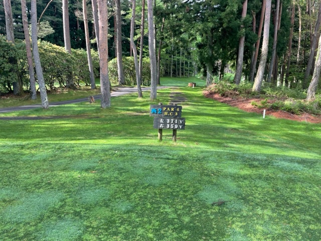 2番394y右ドッグのミドルは、ドライバーはナイス。8アイアンで打つも竜巻球。寄らず入らず。見事な2オンからM.Oさんが無難にパーでベスト獲得。
