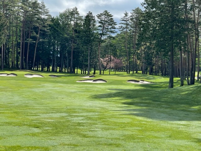 2番371y左ドッグのミドルは、ドライバーは弱々しい球。コーナーまで飛んでいない。7アイアンでのフックでまずまずの位置へ。3打目が乗らず。やっとのボギー。