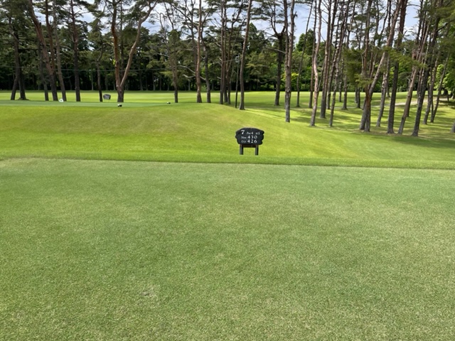 6番349yミドルは、ドライバーは左のクラスバンカーイン。9アイアンで打つもどダフリ。3打目も乗らず。ダボ。素晴らしいパター力でS.Sさんが銅竿パー。また、ナイスアプからT.Wさんも鉄パー奪取。